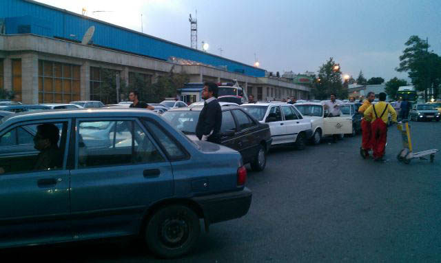 دو تصویر زیر ، ورودی پارکینگ فرودگاه را نشان می دهند. همان طور که می بینید خودروهای زیادی پشت در پارکینگ که بر روی آن تابلوی "ظرفیت تکمیل است" متوقف هستند. توقف گاه آنقدر طولانی می شود که مانند تصویرهای زیر برخی رانندگان از خودروهای خود پیاده می شوند ؛ این وضعیت برای مسافرانی که قصد دارند خودروی خود را در پارکینگ بگذارند و به پرواز برسند بسیار آزار دهنده است. تصورش را بکنید کسی کمتر از یک ساعت تا پروازش باقی مانده و وقتی به فرودگاه رسیده ، با این وضعیت مواجه می شود و مجبور است مدت زمانی نامعلوم را در صف ورودی پارکینگ بگذراند و نهایتاً هم معلوم نباشد که به پروازش خواهد رسید یا نه؟ جاهای دیگر محوطه هم که برای پارک وضعیت مناسبی ندارند.