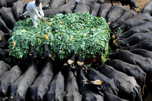 دادن علوفه به گاو میش ها در لاهور پاکستان