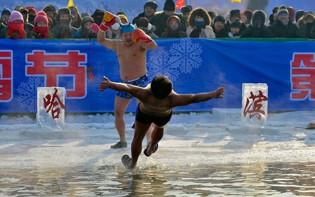 مسابقات بوکس روی دریاچه یخ زده سونگوا در هاربین چین