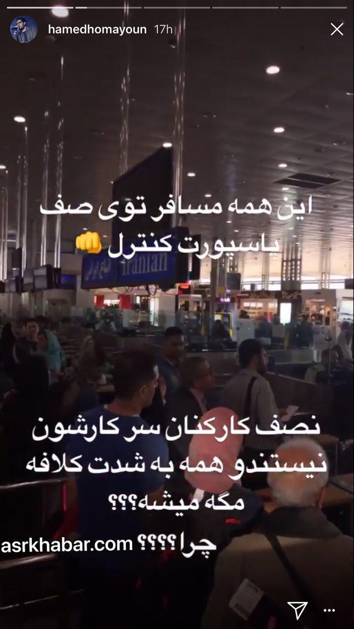 انتقاد حامد همایون، خواننده مشهور از وضعیت فرودگاه امام (عکس)